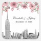 Invitaciones y accesorios personalizables con una vista grabada en negro y blanco de la icónica silueta de la ciudad de Nueva York con el Edificio Emp St y un borde floral rosa. ===========