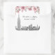 Pegatina Cuadrada Horizonte urbano de NYC ESB Etch Floral Rosa Acuar