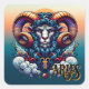 Aries Pegatinas. Un hermoso ilustracion ai de un majestuoso y fresco ariete en un colorido ilustracion ai. Arte digital azul y naranja.