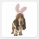 Pegatina Cuadrada Hound de Basset con orejas de conejito
