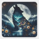 Pegatina Cuadrada Howling Wolf | Arte Ai Luna Completo
