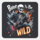 Un pegatina cuadrado fresco y tenso con un esqueleto tocando una guitarra rodeada de llamas con la frase "Hueso a ser salvaje", perfecto para agregar un toque rebelde a cualquier espacio y regalo