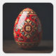 Pegatina Cuadrada Huevo de Pascua de Tapiz Rojo