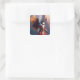Pegatina Cuadrada Humanioide de pájaro con equipo guerrero y espada