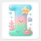 Pegatina Cuadrada "I" Cute Letter - Underwater Sea Creature