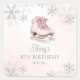 Pegatina Cuadrada Ice Skating Pink Silver Glitter Snowflake Birthday