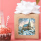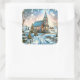 Pegatina Cuadrada Iglesia de bonito en Navidades del Día del Inviern