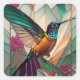 Pegatina Cuadrada Ilustracion de vidrio templado de un colibrí