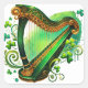Pegatina Cuadrada Ilustracion Irlandés Green Harp Shamrock