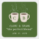 Un par de tazas de café oscuro y abundante, ilustradas y humeantes, decoran esta encantadora ducha o boda, chocolate caliente y pegatina de té. Personaliza todo el texto y color, incluyendo las letras de sus monogramas en las tazas para una etiqueta verdaderamente única.