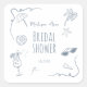 Estas ilustraciones de doodle de playa dibujadas a mano para Stickers de Despedida de Soltera muestran un fondo blanco crujiente con dibujos costeros azules polvorientos y caprichosos, como conchas marinas, olas, estrellas de mar, gafas de sol y destellos. En el centro hay texto editable que dice "Despedida de Soltera", con espacios personalizables para el nombre de la novia arriba y la fecha del evento abajo. Perfecto para decorar favores, sobres, golosinas, bolsas de bienvenida y más, cada detalle es totalmente personalizable para que coincida con tu tema de boda playera.