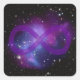Un símbolo de infinito púrpura semitransparente contra una imagen de espacio púrpura. Galaxy Cluster MACS J0717 gracias al programa NASA y Hubble.