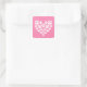 Pegatina Cuadrada Impresión de la hoja rosa del corazón corto