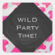 Pegatina Cuadrada Impresión en blanco y rosa caliente de vaca monogr