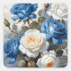 Pegatina Cuadrada Impresión floral de rosas azules y blancas