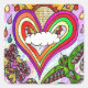 Pegatina Cuadrada Impresión psicodélica de arte cardíaco arcoiris