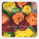 Personalice este impresionante Naranja amarillo y pegatina fotográfico de rosas rojas con un agradecimiento, nombres y la fecha especial.