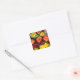 Pegatina Cuadrada Impresionante Naranja Amarillo y Rosas Rojas Bouqu
