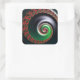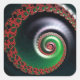 Este trabajo presenta un patrón fractal complejo y giratorio con una estructura espiral que parece extenderse infinitamente hacia adentro. Los colores primarios son rojos vivos y verde exuberante, contrastando con un fondo profundo y oscuro. A lo largo del camino de la espiral, se repiten formas fractales intrincadas y más pequeñas, lo que crea una sensación de profundidad y movimiento. Los elementos fractales rojos se asemejan a las formas orgánicas, casi como flores florecientes o hojas curvadas. Los tonos verdes pasan gradualmente a los blancos plateados más cerca del centro, añadiendo un efecto luminoso. En general, la imagen evoca una sensación de complejidad infinita y energía dinámica.