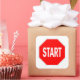 Pegatina Cuadrada inicio del símbolo de señal de tráfico