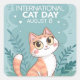 Pegatina Cuadrada International Cat Day Cute Whimsical Cat Art