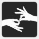 Dos manos blancas haciendo el signo ASL para "interpretar". Las manos se muestran contra un fondo negro.