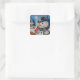 Pegatina Cuadrada Invierno Snowman y el Cardenal Rojo Bird Watercolo
