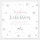 Pegatina Cuadrada Invierno terrestre, Plata y Rosa Primer Cumpleaños