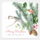 Pegatina Cuadrada Invierno Verdor Pinecone Antler Berries Holiday