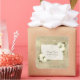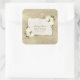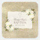 Pegatina Cuadrada Invitación al bautismo floral blanco Purpurina de