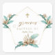 Pegatina Cuadrada Invitación De Bautizo Con Flores Dorado Lirio De M