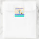 Sellos de sobre de respuesta RSVP, o pegatinas, para invitaciones de fiesta de verano con un tema de paddleboard o deportes acuáticos. Una niña rema en su tabla con un perro marrón a bordo. El agua turquesa tropical contiene una tortuga marina que nada junto a la tabla púrpura. Este es un diseño ilustrado de mi autoría. Las pegatinas redondas y cuadradas funcionan mejor.