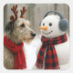 Pegatina Cuadrada Irish Wolfhound Gazing at a Cute Snowman