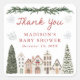 Add a thoughtful finishing touch to your celebration with these It Takes a Village winter baby shower “Thank You” stickers. Featuring a cozy watercolor village surrounded by snowy evergreens, delicate snowflakes, and a greenery garland at the top, the design pairs perfectly with your winter or holiday theme. “Thank You” appears in festive red script above customizable text for the mom-to-be’s name and shower date. Ideal for sealing thank you card envelopes or adding to baby shower favors, these stickers bring a warm, coordinated touch to your event.