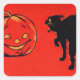 Pegatina Cuadrada Jack O Lantern Pumpkin Black Cat