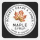 Etiqueta de frasco de jarabe de arce casero editable con ilustración de hoja de arce estilo vintage. Crea tus propias etiquetas para tus recetas caseras favoritas. Perfecto para conservas, regalos caseros o como organizador de la despensa de la cocina.