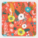 Pegatina Cuadrada Jardín de flores florecientes de primavera roja