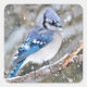 Pegatina Cuadrada Jay azul en una tormenta de nieve