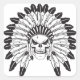 El cráneo del jefe indígena nativo americano con un discurso de plumas.