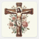 Pegatina Cuadrada Jesús en Crucifijo con Rosas Religiosos