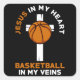 Pegatina Cuadrada Jesús Y El Cristiano Baloncesto Diciendo