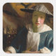 Pegatina Cuadrada Johannes Vermeer - Chica con flauta