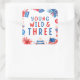 Pegatina Cuadrada Joven Salvaje y tres cuartos del tercer cumpleaños