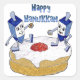 Pegatina Cuadrada Judaica Happy Hanukkah Dancing Dreidels Doughnut