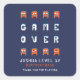 Naranja píxel monstruo extraterrestres video fiesta de juegos gracias pegatina, personalizar con su propio nombre edad / nivel y agradecer mensaje. Ideal para fiestas de videojuegos gracias y favores. Arte y diseño de www.mylittleeden.com en zazzle.