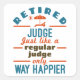 Este divertido diseño de juez jubilado dice: "Juez retirado igual que un juez normal, es más feliz". Agarra uno para un tribunal que se retira.