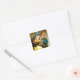 Pegatina Cuadrada juguete de conejo y huevo amarillo de pascua