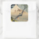 Pegatina Cuadrada Katsushika Hokusai - Muchacho viendo el Monte Fuji