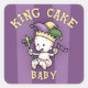 Un lindo Mardi Gras King Cake Baby en una gorra de bufón, sosteniendo una flor de lis y una máscara para los ojos. Arte morado, verde y dorado, camisetas, sudores, cartas, regalos.