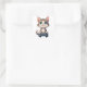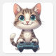 Pegatina Cuadrada Kitten Holding Game Controller Smiling Gamer Cat